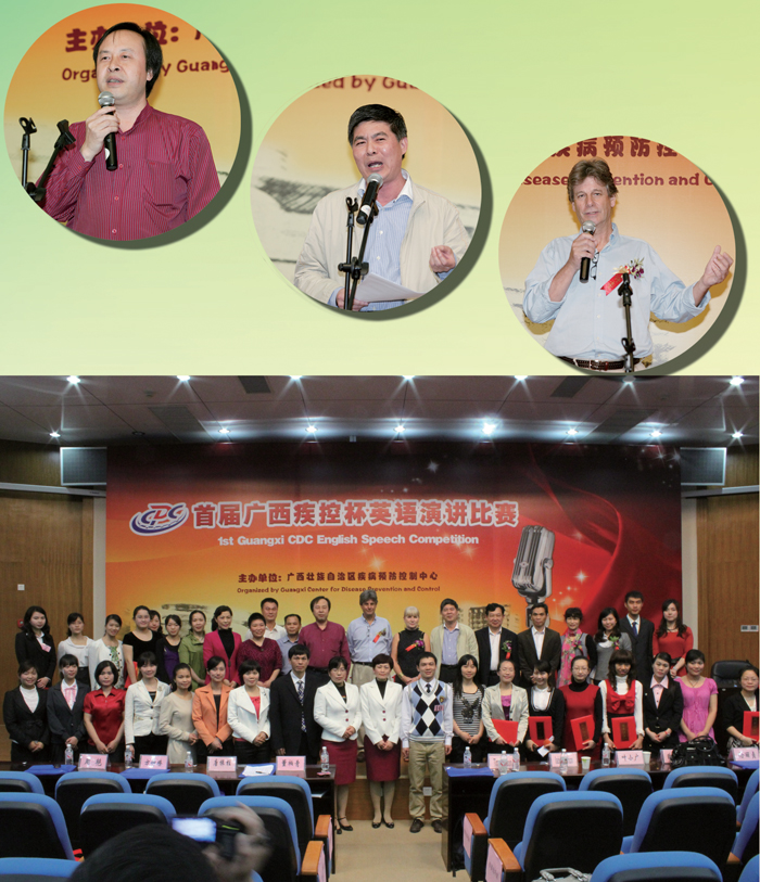 2011年4月11日,自治区疾控中心举办全区首届“疾控杯”英语演讲比赛。来自全区10个地市的25位选手参与角逐。大赛邀请了英国University College London的Tim Harrison教授和Harrison夫人以及区内高校从事英语教学的5位教授共7人作为评委,自治区卫生厅疾控处处长董柏青及自治区疾控中心主任唐振柱莅临演讲现场并为大会致辞,自治区疾控中心副主任方钟燎、周艳出席了演讲比赛。