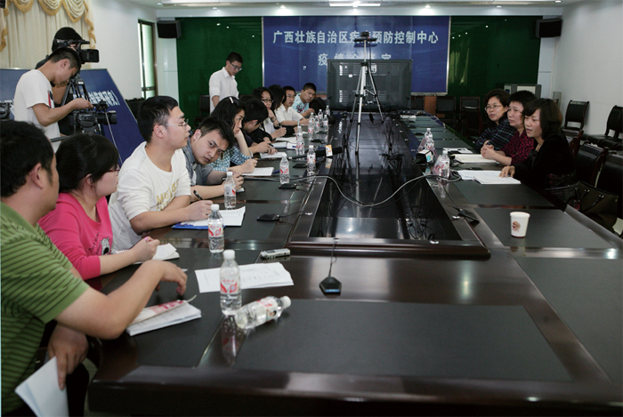 ,自治区疾病预防控制中心召集驻邕各大新闻媒体召开新闻通气会,公布了日本核污染事件后南宁市蔬菜等检查情况,以消除市民对日本核污染事件影响的恐慌。