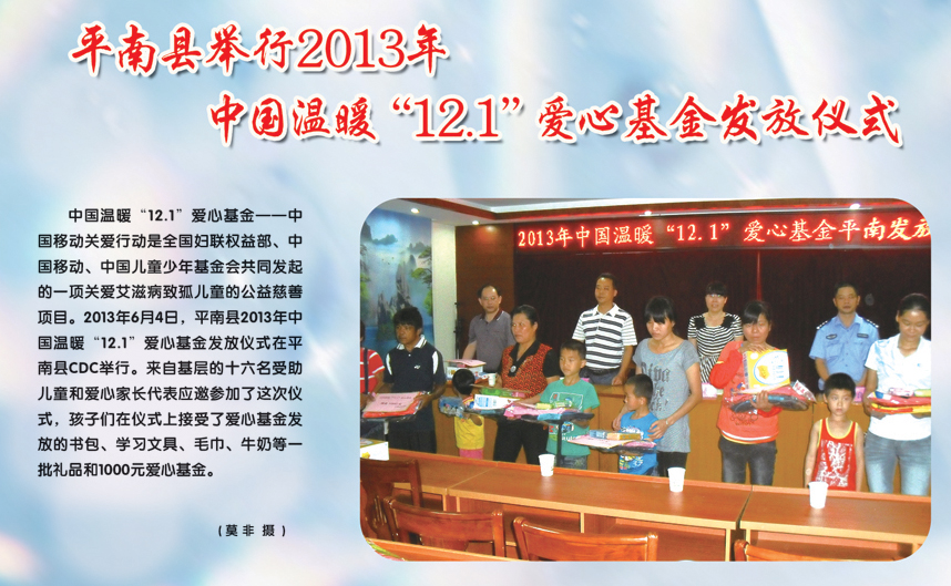 平南县举行2013年中国温暖“12.1 ”爱心基金发放仪式