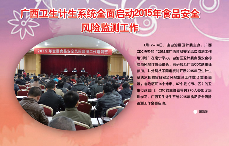 广西卫生计生系统全面启动2015年食品安全风险监测工作