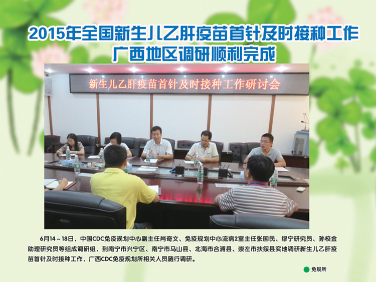 2015年全国新生儿乙肝疫苗首针及时接种工作广西地区调研顺利完成