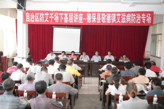 接着,唐振柱主任还在敬德镇政府礼堂作了“科学认知艾滋病,坚决打赢攻坚战”艾防知识讲座,敬德镇政府全体干部、各村村干和村医、当地中小学老师、镇卫生院医务人员及群众共100多人参加了活动。百色市疾控中心调研员何友雄、德保县副县长黄兰爱、县卫生局局长黄运项、县疾控中心主任蒙建作等领导一起陪同督导。