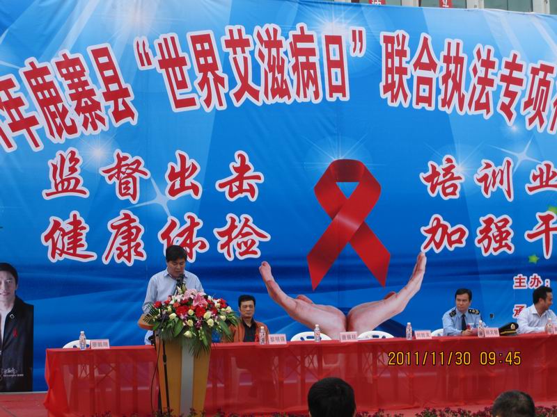 鹿寨县“世界艾滋病日”联合执法专项行动目的进一步贯彻落实《传染病防治法》、《艾滋病防治条例》等规定,建立多部门联合执法长效机制,依法落实艾滋病各项防控措施。在启动会上,唐振柱主任做了重要发言,他指出,在9月-10月,自治区疾控中心组织全区所有市、县疾控中心对全区低档失足妇女进行HIV感染状况和行为社会学调查发现,发现一些市县低档失足妇女的HIV感染率是普通妇女的10~100倍,她们是我区近年来传播艾滋病病毒的重要桥梁人群,也是艾滋病毒、梅毒等感染的易发人群。因此,鹿寨县通过加强公共场所的失足妇女有效管理与干预是创新社会管理的需要,也是防控艾滋病流行的重大举措,意义深远而重大。