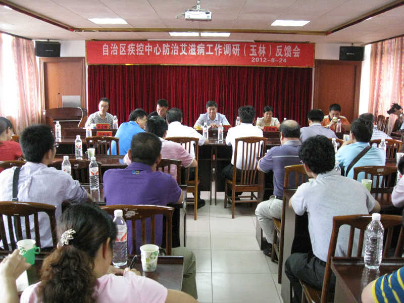 在防城港市期间,在防城港市卫生局黄锦玲局长、吴洁副局长、市疾控中心黄飞主任的陪同下,调研组考察了防城港市疾控中心、防城港市人民医院、企沙镇卫生院、防城区社区卫生服务中心、实地走访高危人群的干预工作现场;在玉林市期间,在玉林市卫生局蒋羽局长、罗锡荣副局长、市疾控中心李文主任、梁炯明副主任、防艾办副主任庞武贵等陪同下,调研组先后访问玉林市疾控中心、玉林市红十字会医院、玉林市第一人民医院、成均镇卫生院、城西镇卫生院。在贵港市,调研组与贵港市卫生局李健龙副局长、贵港市疾控中心班子、艾防科全体科员研讨贵港市艾滋病防控策略。