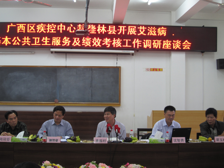 2012年9月16-19日,自治区疾病预防控制中心唐振柱主任带同艾滋病防制所沈智勇所长等艾防相关人员,赴百色市、隆林县调研艾滋病防治工作。在百色期间,调研组先后到百色市疾控中心、市人民医院、市妇幼保健院、右江区妇幼保健院和高危人群活动场所进行实地走访;在隆林县期间,调研组依次在县疾控中心、县人民医院、县妇幼保健院和德峨乡卫生院进行现场调查。调研组通过查阅资料、与工作人员座谈等形式开展工作,了解了防艾一线情况。