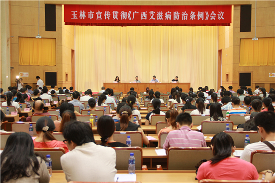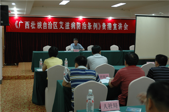 为认真贯彻实行《广西艾滋病防治条例》精神,确保《条例》在我区全面、有效实施,更好地推动全区艾滋病防治工作深入开展,2013年7月2-3日,中心唐振柱主任带队到玉林市和贵港市做了宣传贯彻专题活动。玉林市和贵港市的防艾委成员单位领导和联络员,市直医疗卫生单位领导和医务人员,玉林师范学院及城区各中学、职业学校的领导、教师和校医,各县(市、区)防艾办主任、卫生局防艾科科长、疾控中心主任及防艾科科长,以及城区各娱乐场所和公共服务场所的业主代表共400余人参加了宣讲会。
