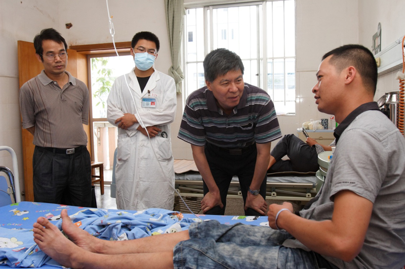 为了弄清楚南宁市登革热的来源和病人治疗效果,对病人和家属进行登革热防治知识健康教育,有效地管理传染源,防止疫情的扩散和院内感染,自治区疾控中心主任唐振柱于10月3日在南宁市第四医院副院长覃亚勤、党委副书记詹铁斌的陪同下,到南宁市第四医院对登革热住院病人进行病例个案调查,发现他们当中不少人发病前5-7天曾到过广西花鸟市场购买花鸟,而且当时蚊子很多,当场就被蚊子叮咬,病人症状和体征很典型,这些情况有助于证实病人被感染时间、地点和方式,另外还发现家属先后发病的情况,推测登革热可能向家属扩散。病人经过治疗恢复良好。在病房,唐主任向病人和家属发放了《致病友的一封信》和《致病友家属的一封信》,叮嘱病人和家属要做好家庭内和环境的防蚊灭蚊,详细讲解防蚊灭蚊的方法和措施,交待密切观察家人和朋友是否发病,一旦出现类似症状就立即到综合性医院诊治。在医院发热门诊,深入了解可疑病例的分诊和病例报告情况,高度认可发热门诊病例报告在登革热传染源发现报告的“哨兵”作用。