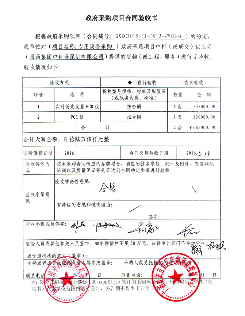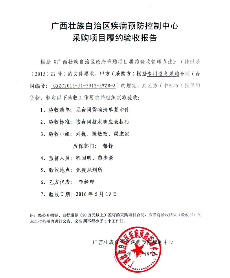 广西壮族自治区疾病预防控制中心政府采购项目合同验收公告(GXZC2015-J1-3912-KWZB-A