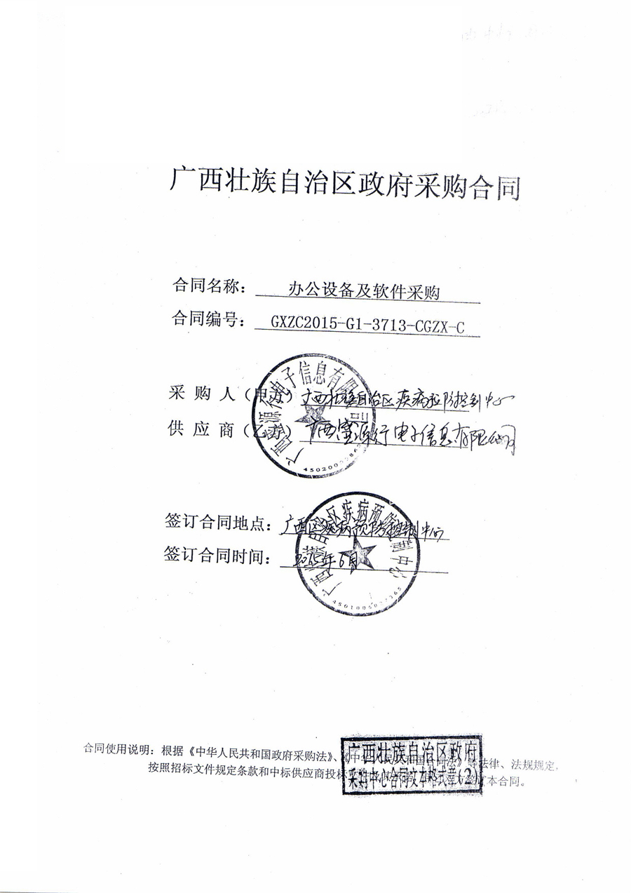 根据《广西壮族自治区政府采购项目履约验收管理办法》(桂财采〔2015〕22号 )的文件要求,现将合同名称:办公设备及软件采购(GXZC2015-G1-3713-KWZB-C)的验收情况公告如下: