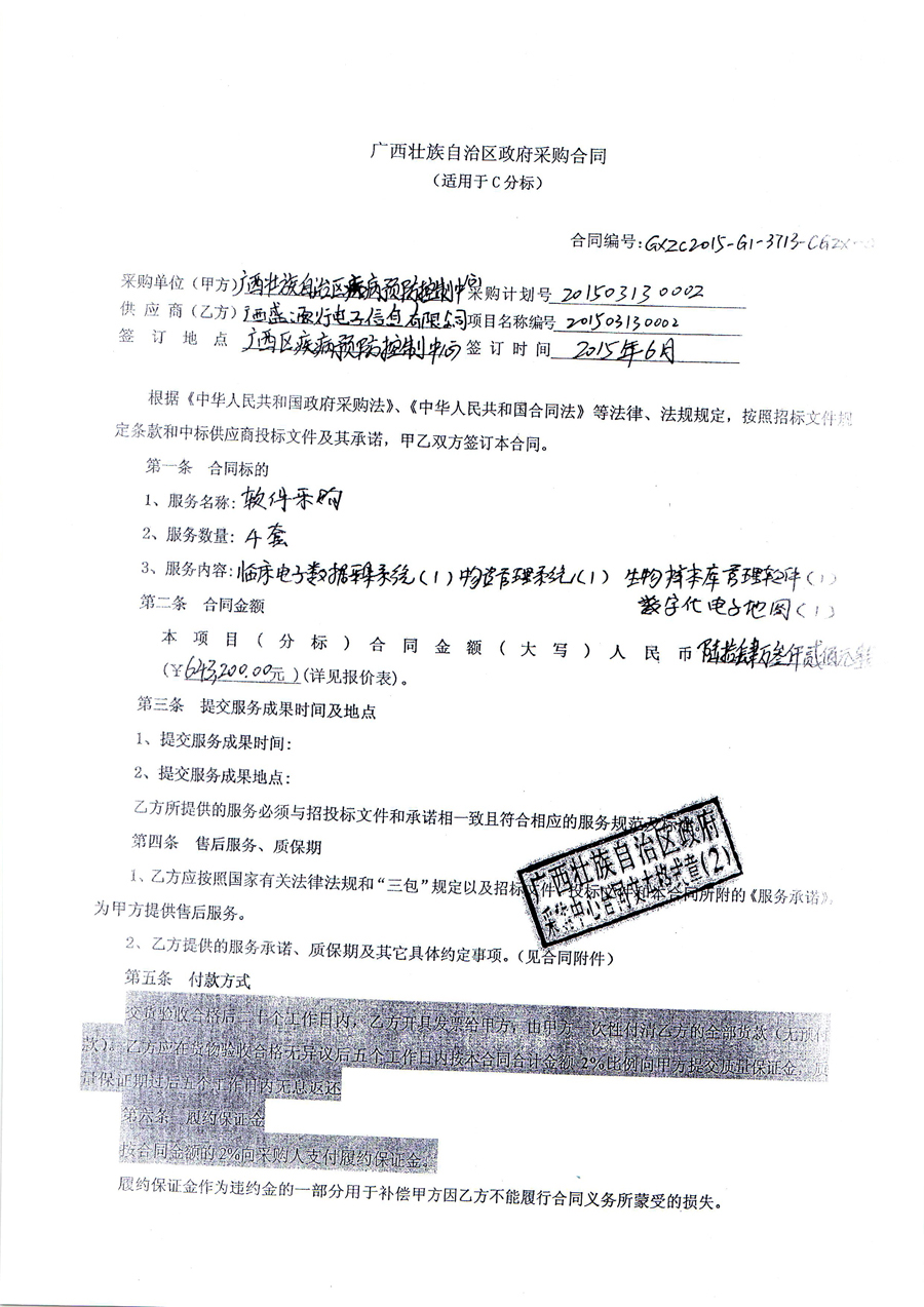 广西壮族自治区疾病预防控制中心政府采购项目合同验收公告(GXZC2015-G1-3713-CGZX-C)