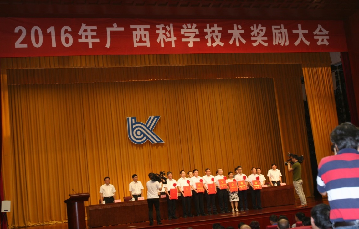 6月24日,2016年广西科学技术奖励大会在自治区党委礼堂召开,自治区党委、政府、人大、政协相关领导出席会议,自治区相关厅局、各市政府分管领导、有关科研院所、科技企业代表以及获得2015年度广西科学技术奖的部分获奖代表参加了此次会议。自治区党委书记、自治区人大常委会主任彭清华出席大会、自治区主席陈武在会上发表了重要讲话。会议表彰了155项2015年度广西科学技术奖,其中科学技术特别贡献奖2项;自然科学奖一等奖2项、二等奖8项、三等奖10项;技术发明奖一等奖1项、二等奖5项、三等奖7项;科学技术进步奖一等奖7项、二等奖45项、三等奖68项。我中心唐振柱主任医师作为26名获奖代表之一参加会议并荣幸上台接受自治区政府黄日波副主席颁发的获奖荣誉证书。