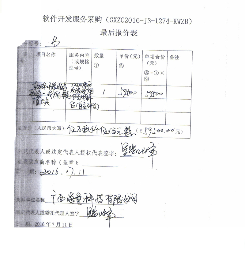 根据《广西壮族自治区政府采购项目履约验收管理办法》(桂财采〔2015〕22号 )的文件要求,现将合同名称:专用设备及软件开发服务(GXZC2016-J3-1274-KWZB-B)的验收情况公告如下: