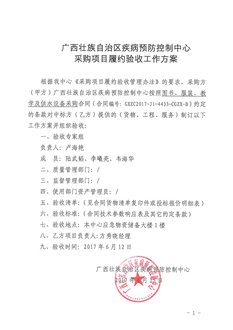 广西壮族自治区疾病预防控制中心政府采购项目合同验收公示(GXZC2017-J1-4433-CGZX-B)