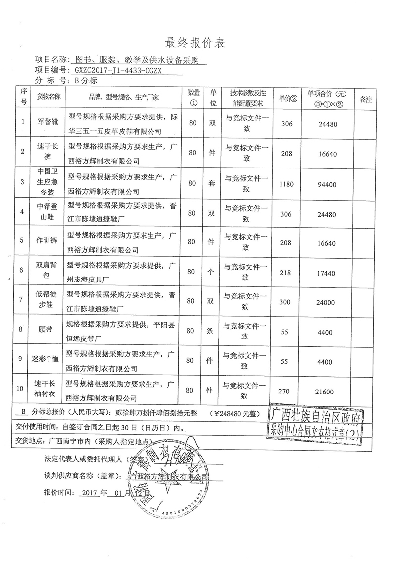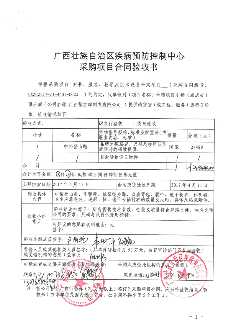 根据《广西壮族自治区政府采购项目履约验收管理办法》(桂财采〔2015〕22号 )的文件要求,现将合同名称:图书、服装、教学及供水设备采购(GXZC2017-J1-4433-CGZX-B)的验收情况公告如下: