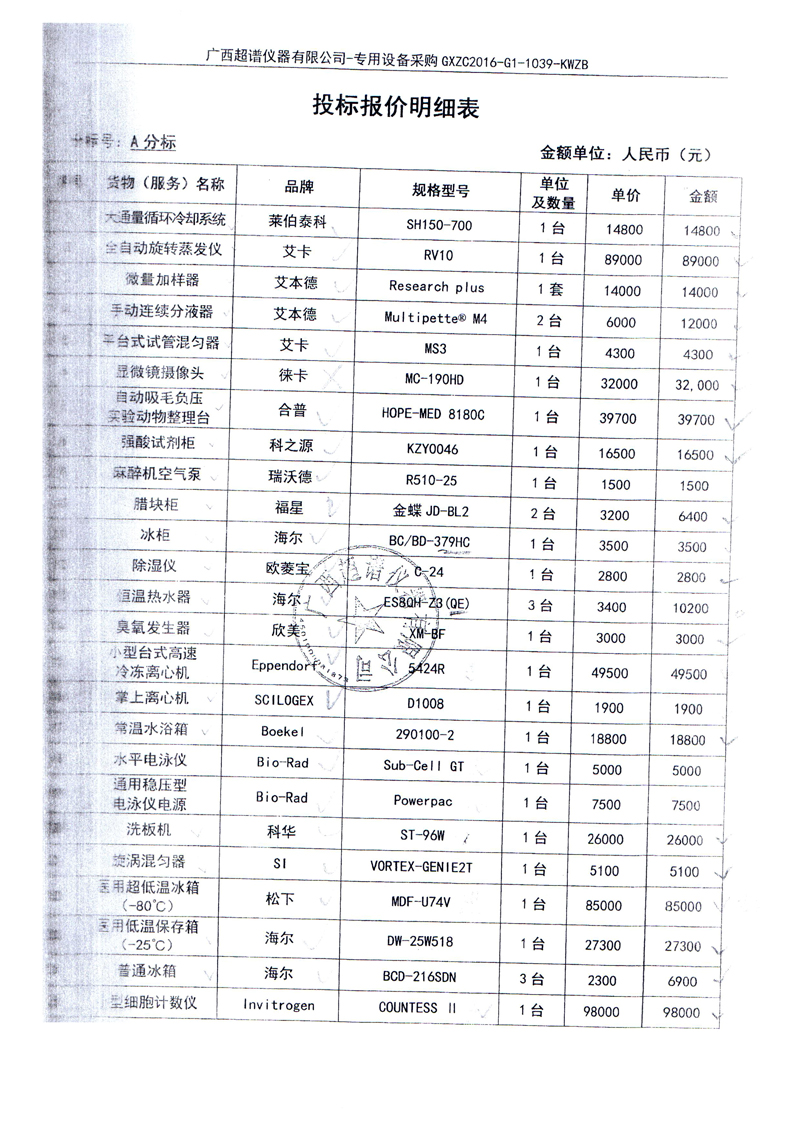 广西壮族自治区疾病预防控制中心政府采购项目合同验收公告(GXZC2016-G1-1039-KWZB-A)