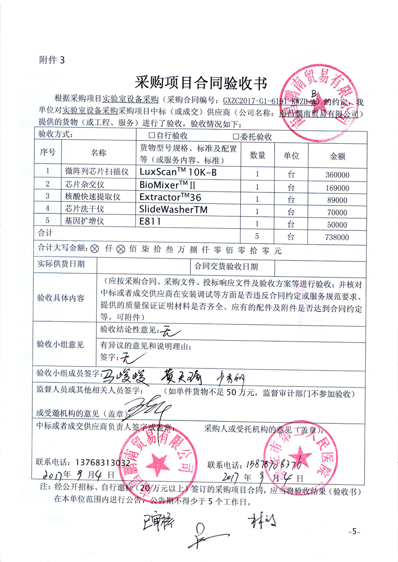 根据《广西壮族自治区政府采购项目履约验收管理办法》(桂财采〔2015〕22号 )的文件要求,现将合同名称:实验室设备采购(GXZC2017-G1-6191-KWZB-B)的验收情况公告如下: