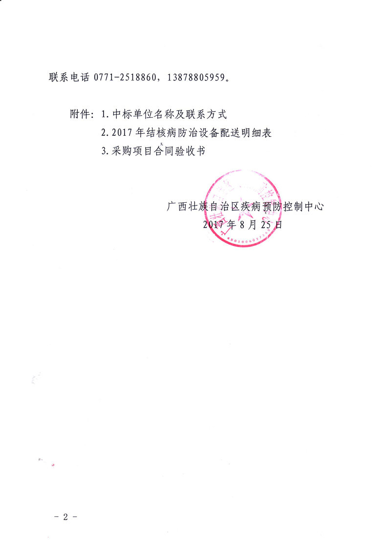 广西壮族自治区疾病预防控制中心政府采购项目合同验收公告(GXZC2017-G1-6191-KWZB-B)