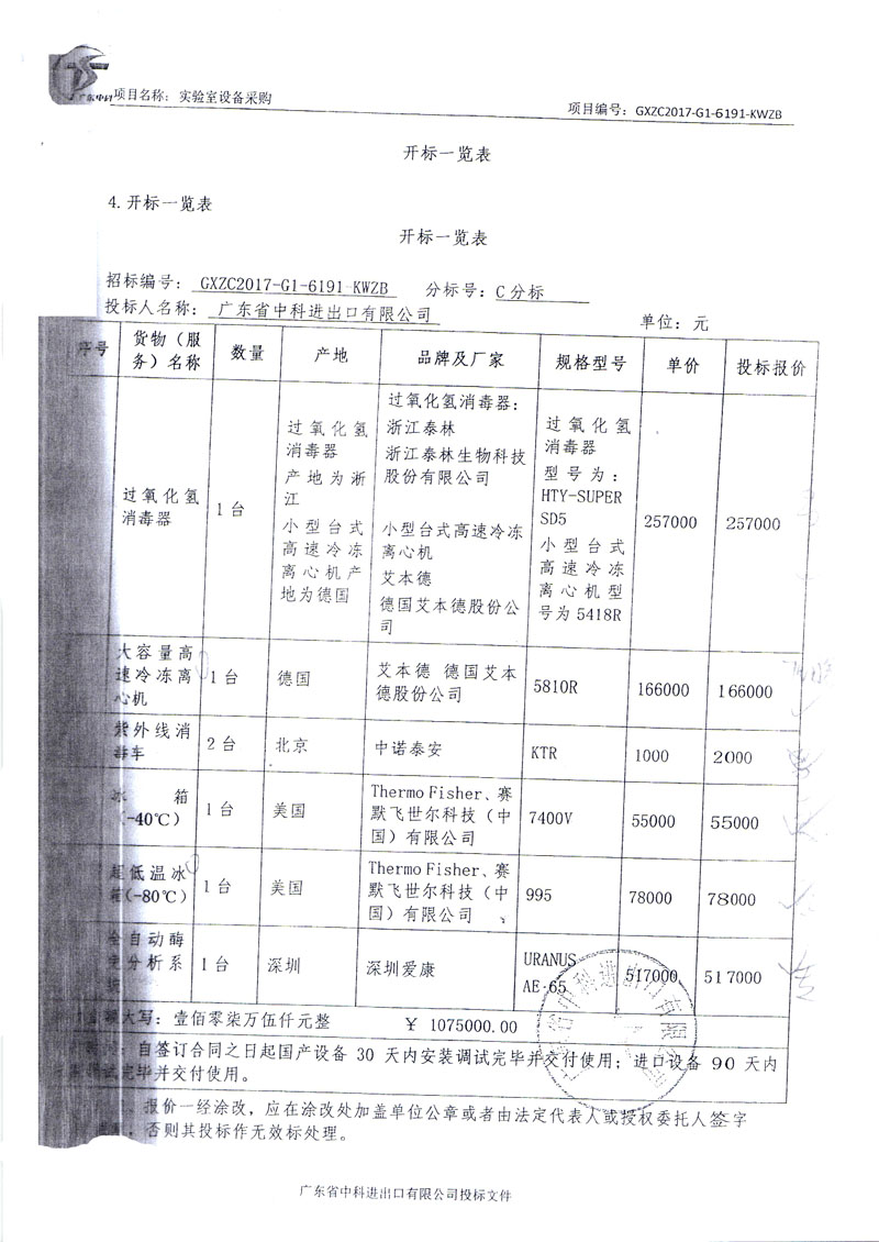 广西壮族自治区疾病预防控制中心政府采购项目合同验收公告(GXZC2017-G1-6191-KWZB-C)
