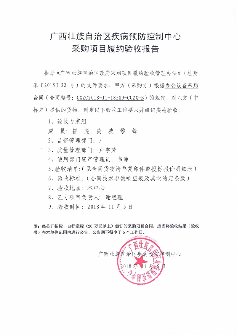 广西壮族自治区疾病预防控制中心政府采购项目合同验收公告(GXZC2018-J1-18589-CGZX-B)