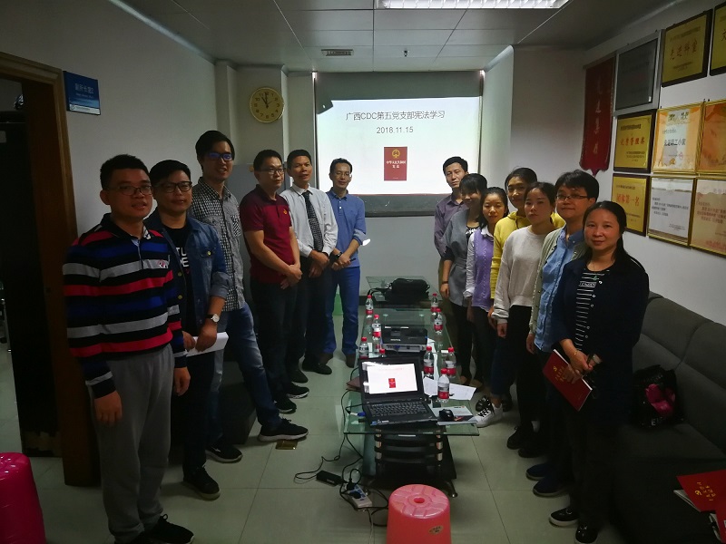 按照中心党委关于开展“深入学习贯彻中华人民共和国宪法”及“不忘初心强党性、牢记使命勇担当”微党课比赛的工作部署,11月15日上午,第五党支部全体党员在免疫规划所会议室开展宪法学习和微党课交流学习活动。本次学习活动由党支部书记钟革主持。