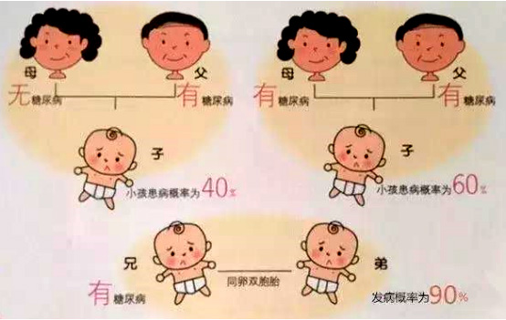 父母双方一人有糖尿病,孩子的患病风险为40%;