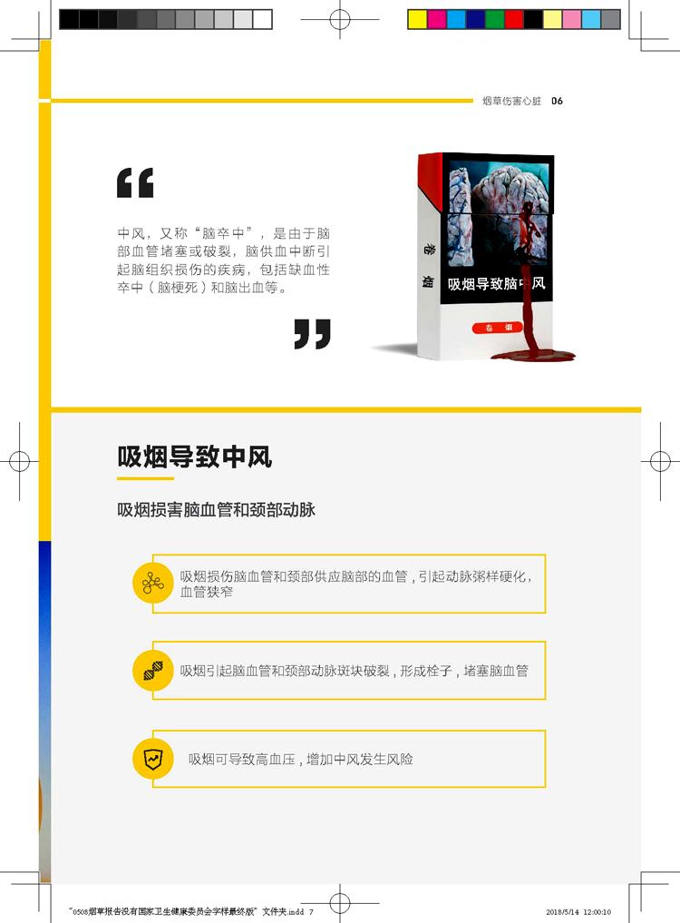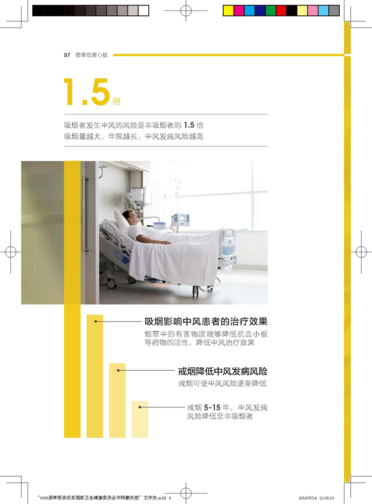 核心信息三:吸烟可以导致脑血管和颈部动脉损害,增加中风的风险;吸烟者发生中风的风险是非吸烟者的1.5倍。