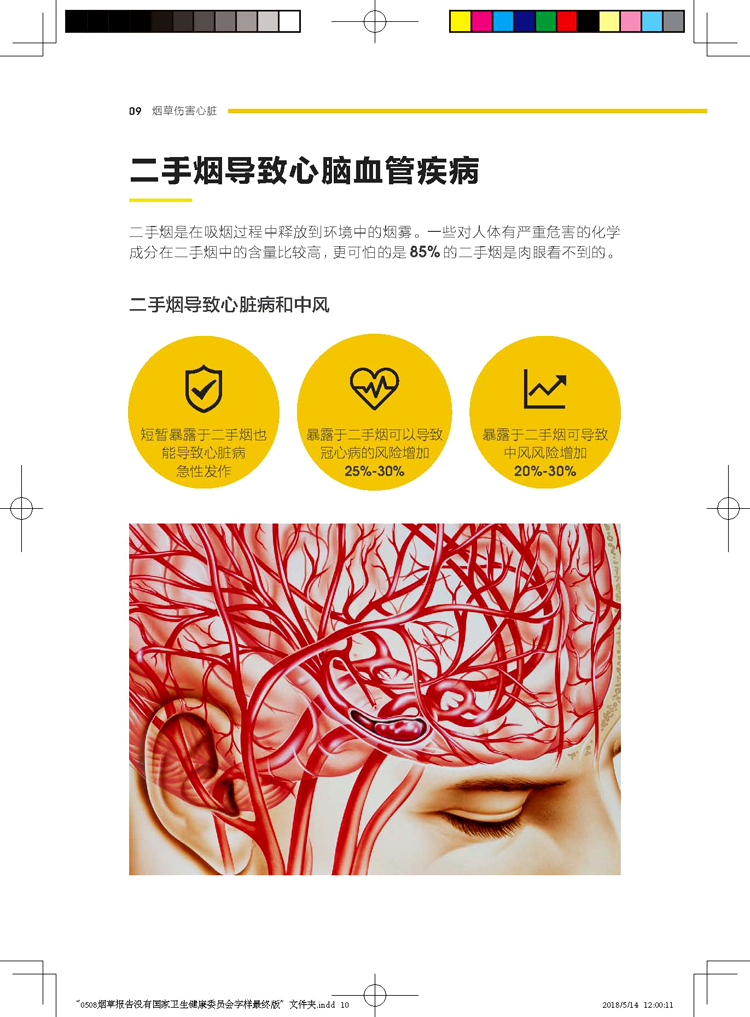核心信息五:二手烟可迅速损伤心脑血管,导致心脏病和中风;可导致冠心病的风险增加25%-30%,导致中风的风险增加20%-30%。
