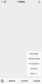 步骤二:登录广西疾控公众号→点击疾控服务菜单栏→点击结防志愿者