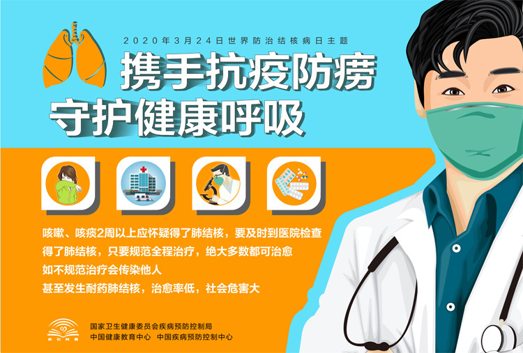 2020年3月24日是第25个世界防治结核病日,今年我国的宣传主题是:携手抗疫防痨、守护健康呼吸。