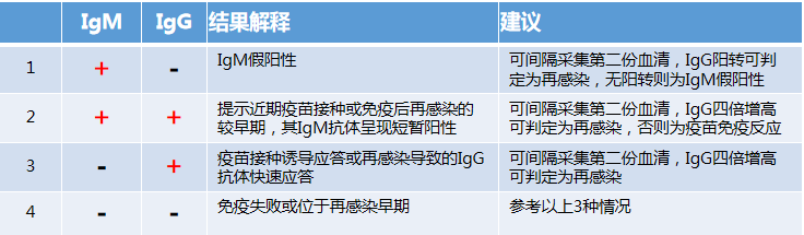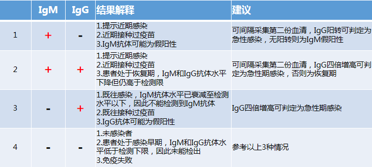 单纯的新冠病毒IgM、IgG抗体检测结果不能作为新冠病毒感染确诊和排除的依据,但与新冠病毒核酸、抗原协同检测可用于辅助诊断新冠病毒感染。