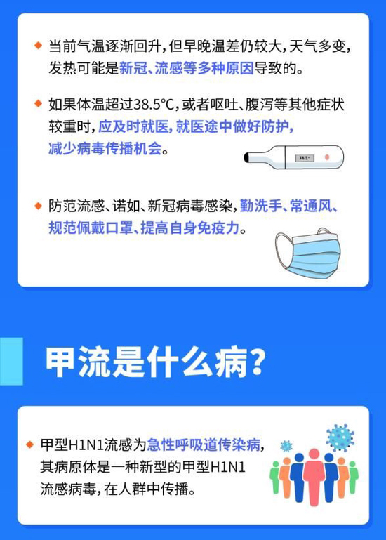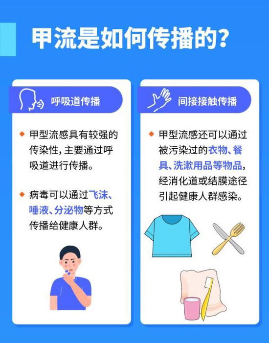 近日,上海青浦一小学某班级因多名学生发热,停课4天,经证实发烧是因甲型流感引起。当前气温逐渐回升,但早晚温差仍较大,天气多变,甲流进入多发期,与新冠感染一样,也会引起感冒、发热等症状。甲流主要症状有哪些?是如何传播的?一图了解: