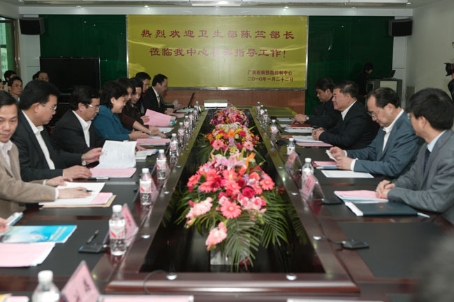 下午,卫生部陈竺部长到广西自治区疾病预防控制中心检查指导工作。