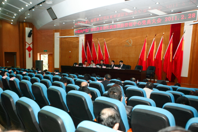2011年2月28日,中共广西壮族自治区疾病预防控制中心召开全体党员大会,出席本次大会的领导有自治区卫生厅党组成员副厅长梁远,自治区卫生厅直属机关党委专职副书记梁毅以及中心在职共产党员151名,离退休共产党员48名。大会由中心党委副书记纪委书记李永振主持,会议主要议题是进行中心党委、纪委换届选举。大会选举通过马金玉、方钟燎、吕炜、杨进业、杨益超、李永振、林 玫、卓家同、周艳、周昌明、梁江明(按姓氏笔划排序)为中心第二届党委委员,李永振、姜世英、骆笑红、黄兆勇、谭 毅(按姓氏笔划排序)为中心第二届纪委委员。会上中心党委书记杨进业做《加强党的组织建设,发挥党的核心作用,推进广西疾控中心工作全面发展》的党委工作报告,全面总结近5年来中心党委的主要工作和存在不足并对新一届党委工作提出设想。自治区卫生厅党组成员、副厅长梁远作重要讲话,肯定中心党委始终认真围绕自治区党委和政府赋予的疾病预防控制与公共卫生技术管理和服务职能所做的一系列工作,为我区卫生事业改革发展做出了积极的贡献;对党委的换届工作提出要求:希望与会的同志能够严格遵守党章和党内有关选举工作条例规定,认真履行党员的权利和义务,符合党章规定,符合民主程序,代表绝大多数党员的意愿;同时对选举产生的新一届委员会提出希望:希望继续发扬过去的好经验、好传统、好作风,加强领导班子建设,着力提高党员干部队伍的综合素质,始终坚持服务大局,全面做好疾病预防控制各项工作,持续推动创先争优活动,努力开创疾控中心党建工作新局面。自治区卫生厅直属机关党委专职副书记梁毅同志也作了指示。本次大会的召开是自治区疾控中心全体党员政治生活中的一件大事,是新时期加强党建工作的一项重要举措,对于进一步加强疾控中心党的思想、组织、作风和制度建设,促进疾控中心各项工作任务的完成,具有重要的意义。