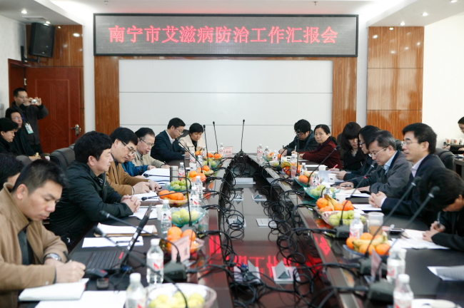 3月8日上午8时30分,中国CDC性艾中心综合技术督导工作汇报会在广西CDC行政楼五楼会议室进行,参加的人员有国家督导组成员、广西卫生厅梁远副厅长、艾防处耿文奎处长、陈赤处长、陈杰调研员、艾防处相关工作人员、广西CDC班子成员、综合办公室、艾防所及相关业务科(所)专业人员等,会议由广西CDC杨进业书记主持。首先,由广西CDC唐振柱主任从广西艾滋病疫情分析、死亡病例分析、综合防治主要工作成效、落实2010年国家考核指标情况、存在问题和困难、2011年工作计划等五个方面做了详细的工作汇报。接着,由广西卫生厅梁远副厅长代表卫生厅对中国CDC长期支持广西、帮助广西表示衷心地感谢,梁远副厅长谈到,广西各级党委、政府非常重视艾滋病防治工作,坚信通过几年的不懈努力和辛勤工作,防艾效果一定会显现出来,也希望通过国家对广西的这次督导,使广西艾滋病防治的各项工作得到进步,推向一个新的高度,进而改进工作质量。中国CDC性艾中心吴尊友主任对广西所做的工作给予了充分肯定,并做了《广西艾滋病防治工作与落实国务院<通知> “五扩大、六加强”措施》的专题报告,内容包括疫情分析与工作现状、广西存在问题的分析”、 “十二.五”工作展望、2011年广西落实“五扩大”的具体措施等。随后,国家督导组的其他专家分别就病人发现晚、检测数据的进一步分析、治疗网络体系建设、美沙酮维持治疗、针具交换等方面提出了中肯的建议。最后,广西卫生厅防艾办耿文奎处长、陈赤处长和广西CDC唐振柱主任分别就广西艾滋病防治工作中实际存在的一些瓶颈问题、难点问题向国家专家请教,双方进行了广泛地交流,取得了共识。