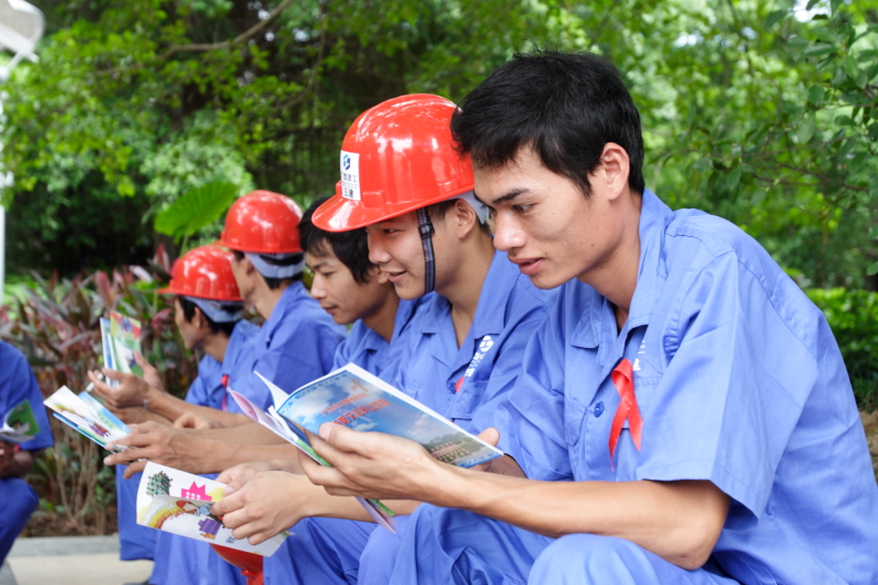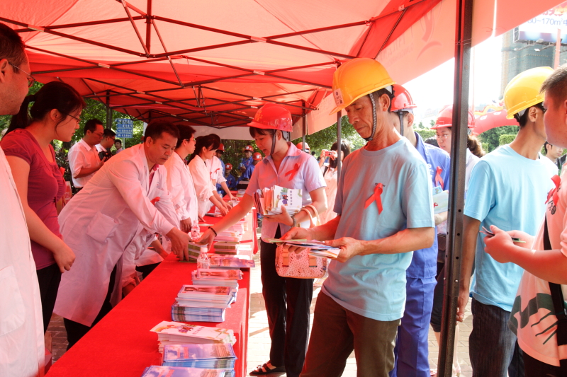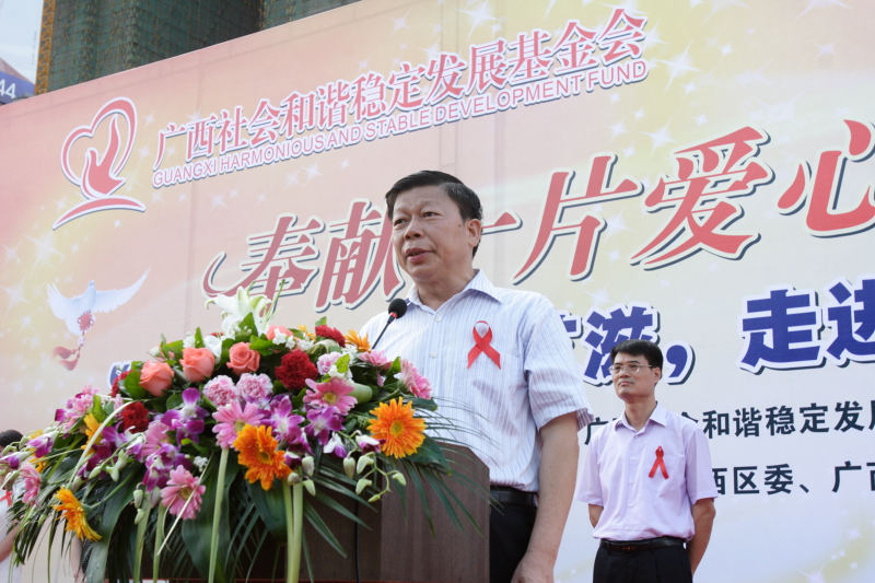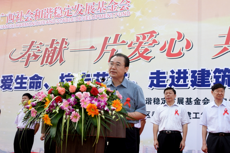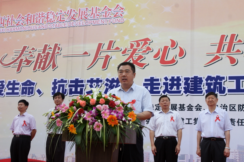 2011年8月4日上午,由广西社会和谐稳定发展基金会、自治区防治艾滋病工作委员会办公室、共青团广西区委、广西建工集团有限责任公司主办的全区"珍爱生命 抗击艾滋 走进建筑工地"行动启动仪式在南宁举行.广西壮族自治区政法委温卡华书记在启动会上宣布全区"珍爱生命 抗击艾滋 走进建筑工地"行动正式启动,并向建筑工人代表赠送红丝带防艾健康包。