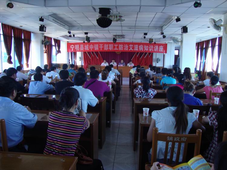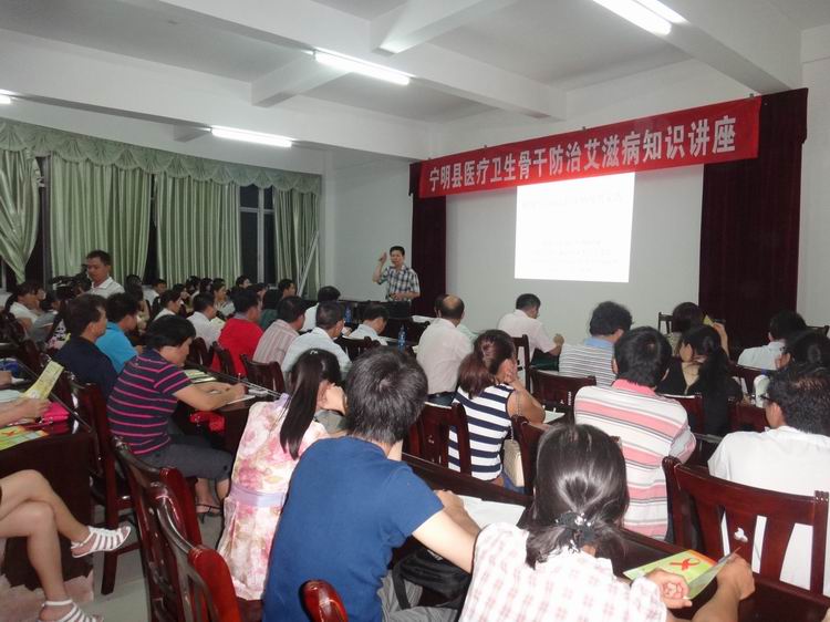 为贯彻落实自治区防艾办《关于“千堂讲座下基层、万场图展进社区”行动实施方案的通知》(桂防艾办【2011】26号)文件精神,提升宁明县各级防艾队伍能力,普及预防艾滋病的基本知识,提高全民防范艾滋病的技能和意识,增强公众社会免疫力及责任感,2011年7月25~26日,自治区卫生厅防艾办黄新翔及自治区疾病预防控制中心卓家同副主任、钟革所长一行三人到宁明县人民医院、公安局及城中镇社区开展了3场防艾知识宣传讲座, 共380多人参加了培训。