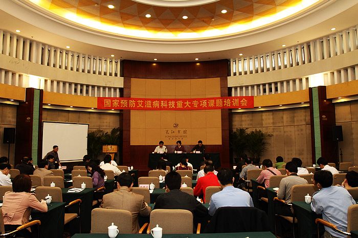 2012年3月29日国家预防艾滋病科技重大专项课题培训会在南宁召开。传染病防治国家重点实验室主任、国家传染病防治科技重大专项总体专家组专家、“十二·五”重大专项“综合防治示范区和现场研究”责任专家组组长李兰娟院士,卫生部医药科技发展研究中心主任、卫生部传染病防治科技重大专项办专职副主任李青,广西自治区防艾办主任、卫生厅厅长李国坚等领导出席了培训会。广西自治区防艾办、自治区皮研所、自治区疾控中心、自治区妇幼保健院、广西中医学院附属瑞康医院相关领导和专家,南宁市、柳州市、贵港市、宾阳县、鹿寨县、覃塘区卫生局分管领导,疾控中心主任及艾滋病防治科和县医院传染科相关负责人,宾阳县、鹿寨县、覃塘区管辖的所有乡镇卫生院院长共150人参加了会议。