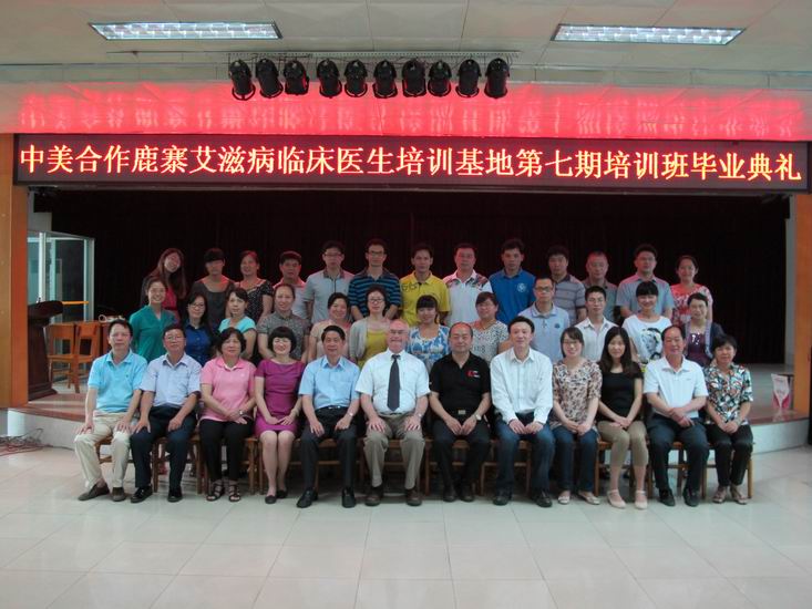 在鹿寨期间,专家组与鹿寨县国家级艾滋病临床医生培训基地的学员一起到鹿寨县人民医院、鹿寨县妇幼保健院、鹿寨县中渡镇中心卫生院等医疗机构,对在治的艾滋病病人进行访谈,对广西孕检、产检过程中艾滋病筛查和报告流程以及母婴阻断的工作程序进行学习。与此同时,Marc Bulterys先生、孙江平副主任和杨进业书记还参加了GAP项目支持鹿寨县国家艾滋病临床医生培训基地第七期学员毕业典礼。