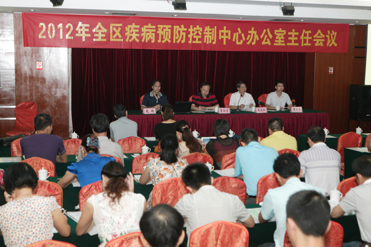 为进一步提高全区疾控系统办公室工作效能,推进绩效考核工作,加强办公室人员政务礼仪及公文处理能力, 2012年9月12-15日,全区疾控中心办公室主任会议在南宁顺利召开。自治区、14个市和95个县(市、区)疾控中心,柳钢和柳铁疾控中心的办公室主任共120多人参会。会议由自治区疾控中心赵鹏副主任主持,自治区卫生厅办公室、应急办董柏青主任、自治区疾控中心杨进业书记出席会议并作重要讲话。