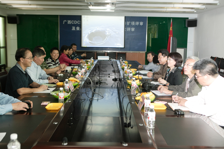 11月13日下午,在黎火佳处长的陪同下,卫生部督查组莅临我中心检查指导。中心主任唐振柱做专题汇报,唐主任首先对中心负责饮用水卫生监测工作的组织结构、人员、检测能力及仪器设备等情况进行介绍,重点介绍了近年来我区城乡饮用水卫生监测工作开展情况、取得的成效,同时对我区市、县级疾病预防控制中心饮用水卫生监测检验能力现状和存在的问题进行了汇报。督查组对我中心的检测能力,以及在饮用水卫生监测工作方面取得的成效表示肯定,同时对各级疾病预防控制中心的能力建设提出了要求。随后,督查组在黎火佳处长、唐振柱主任等领导陪同下实地察看了我中心理化检验所和微生物检验所。