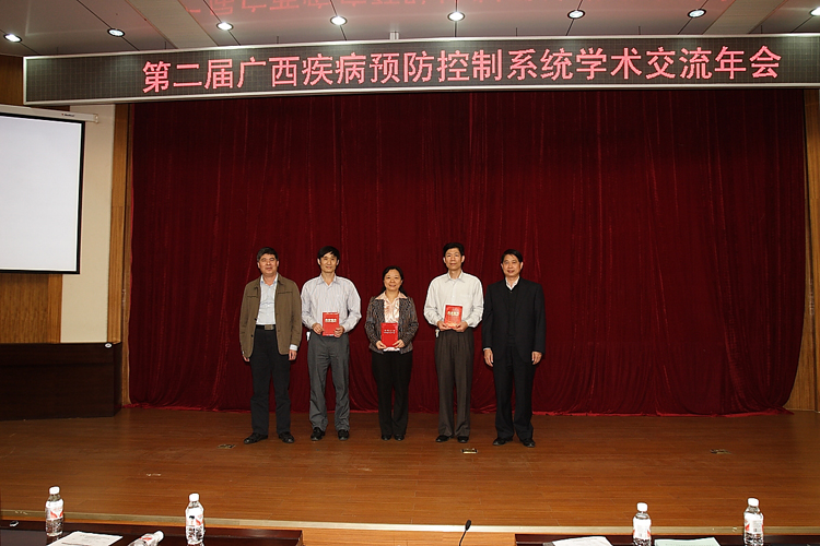 此次学术年会的征文活动从8月份开始,全区各市县疾病预防控制中心踊跃投稿,共征得来自不同单位、不同层次、不同研究方向的学术论文89篇,比首届学术年会多收到投稿35篇。经我中心组织专家评选,总共选出24篇优秀论文,其中一等奖3篇、二等奖6篇、三等奖15篇。优秀论文作者的表彰由我中心赵鹏副主任主持,自治区疾控中心唐振柱主任、杨进业书记、林玫副主任、方钟燎副主任、吕炜副主任和各市疾控中心主任上台给各位论文获奖代表进行颁奖。