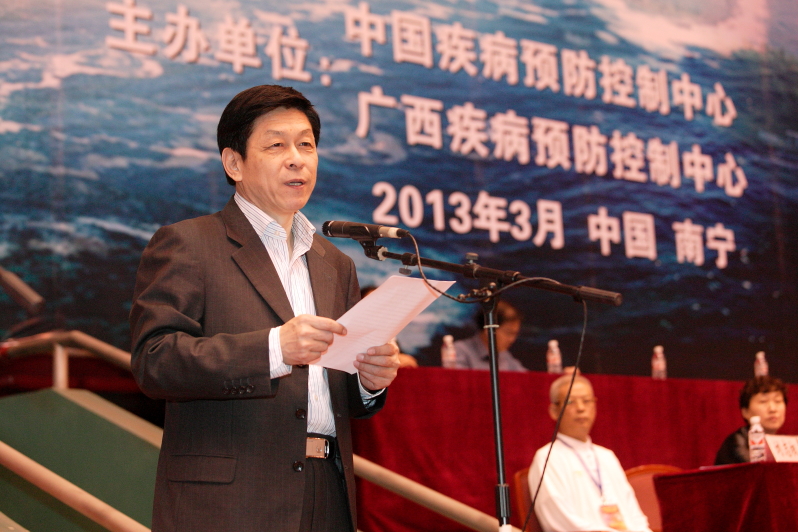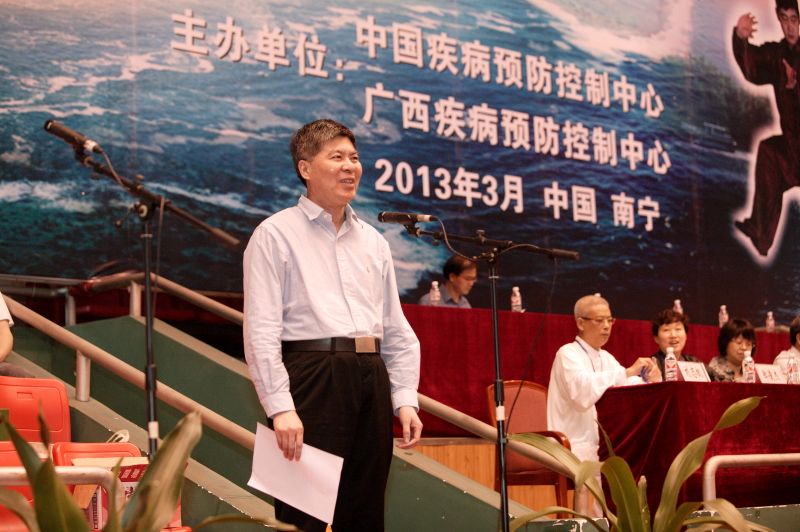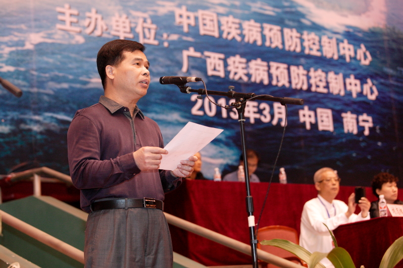 中国疾控中心党委书记梁东明、广西区卫生厅副厅长梁远、广西疾控中心主任唐振柱、党委书记杨进业等有关领导到会致辞并给获奖的团体和运动员颁发奖杯和奖状。(潘少波)