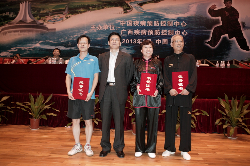 经过一天的紧张角逐,终于赛出了结果,湖北、海南、广东等15个代表队荣获优秀团队奖;中国疾控二队、天津等7个代表队获得最佳表演奖;河北的赵宏儒、烟台的杨红霞等20名运动员荣获个人风采展示奖;烟台市、东莞市、广西代表队获得风采展示奖;西藏刘厚明、东莞陈绍丽、河南高宝珍、烟台郑俊杰、河北鲍文、成都孙焱分别荣获领队友谊赛前五名;烟台、东莞、黑龙江疾控中心代表队摘取团体赛前3名;上海的傅申、东莞刘志权、山东的单宝德、中国疾控的丁春光、西藏的刘厚明、黑龙江的郭晓旭等荣获特别奖。