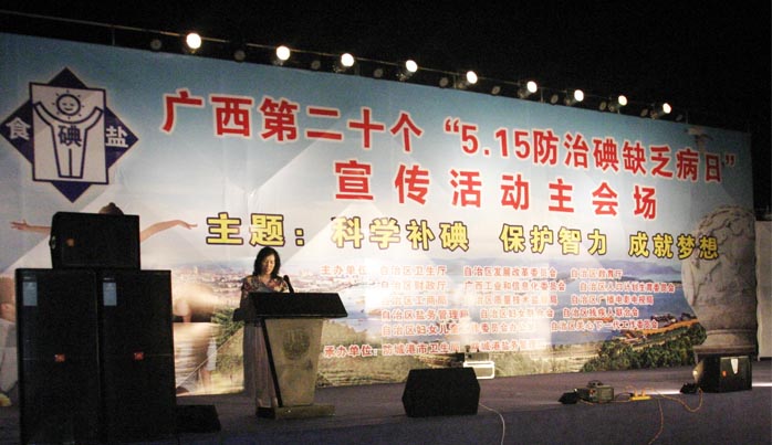 防城港市卫生局局长黄锦玲局长在广西第二十个“防治碘缺乏病日”大型现场宣传晚会上讲话。
