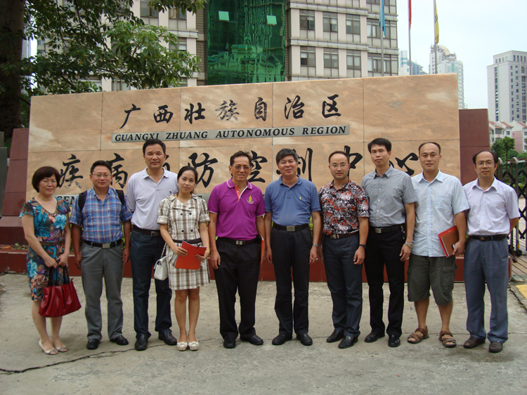 2013年7月20日,泰国南部健康发展研究学院院长、泰国宋卡王子大学教授Virasakdi先生在广西医科大学公共卫生学院冯启明教授、国际教育学院易延华老师、桂林医学院公共卫生学院副院长石武祥教授的陪同下,到广西CDC访问。广西CDC唐振柱主任、综合办公室黄兆勇主任、慢性非传染性疾病防制所杨虹所长、人事科周昌明科长、科研与培训科蒙晓宇科长参加了座谈会。座谈会上中心唐振柱主任从广西CDC概况、主要职能、疾病控制、科学研究进展等方面进行介绍,杨虹所长介绍了广西慢性非传染性疾病防制工作开展情况与进展;Virasakdi教授也介绍了泰国慢病防制的一些经验和做法,特别是在慢病志愿者工作开展方面提出新的思路和方法;同时在人才培养及共同开发研究项目方面达成合作意向。座谈会后,与会者参观中心的办公环境及院容院貌。