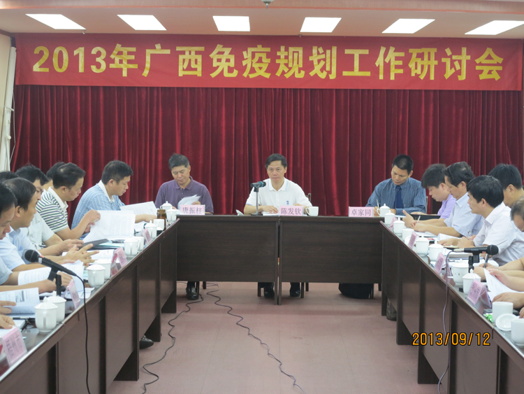 为探索新形势下免疫规划工作策略,进一步完善免疫规划黄牌警告机制,切实做好免疫规划疫苗针对疾病的防控工作,自治区卫生厅于2013年9月11~13日组织召开了2013年广西免疫规划工作研讨会。自治区卫生厅疾控处陈发钦处长、自治区疾控中心唐振柱主任、卓家同副主任出席会议。各市卫生局分管领导、疾控中心主任,以及马山县、陆川县、田东县、天峨县、巴马县、来宾市兴宾区、百色市右江区卫生局分管领导和疾控中心主任及自治区疾控中心免疫规划所业务人员共54人参加了会议。