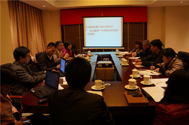 以优化广西艾滋病检测程序,使符合治疗标准的艾滋病病毒阳性者接受治疗,延长寿命,降低病毒死率及延长患者寿命为目的,由我中心与中国疾控中心性艾中心合作的优化艾滋病检测与治疗“一站式服务”试点新探索研究项目正式启动。按照项目计划,我中心与中国疾控中心性艾中心联合于2014年1月23日在南宁市桃源饭店举办项目培训班暨社区顾问委员会第一次会议。中国疾病预防控制中心性艾中心王若涛教授,谷玳、汤后林副研究员,社区顾问委员会成员及广西区疾控中心艾滋病防制所相关项目人员出席了会议。