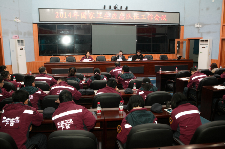 2014年2月25日,广西突发急性传染病防控类国家卫生应急队伍2014年工作会议在自治区疾控中心召开,自治区卫生计生委卫生应急办公室和自治区疾控中心主要领导、全体队员、部分队伍专家组成员及中心办公室、财务科、后勤服务保障科与监察审计科负责人参加会议。