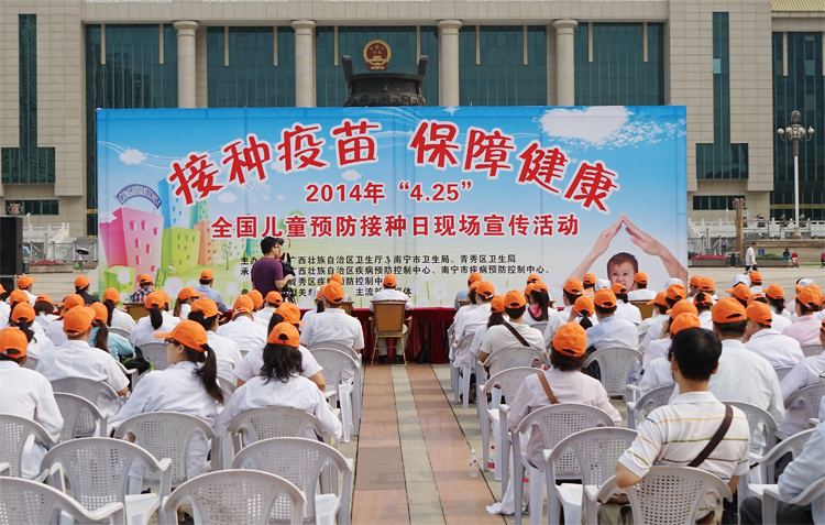 2014年4月25日是第29个“全国儿童预防接种日”,今年的主题是“接种疫苗,保障健康”。为了让公众了解更多的预防接种知识,提高对免疫规划重要性的认识,4月25日上午,由自治区卫生计生委主办,自治区疾病预防控制中心、南宁市疾病预防控制中心和青秀区疾病预防控制中心共同承办的“接种疫苗,保障健康---全国儿童预防接种日现场宣传活动”在南宁市民族广场举行。来自青秀区各预防接种单位,南宁市多家主流媒体及社会各界志愿者100多人参加了本次活动。自治区卫生计生委施小明副主任出席启动仪式。