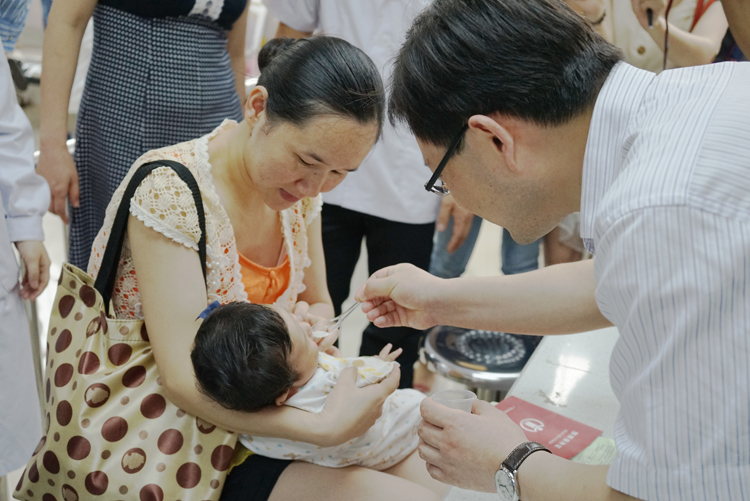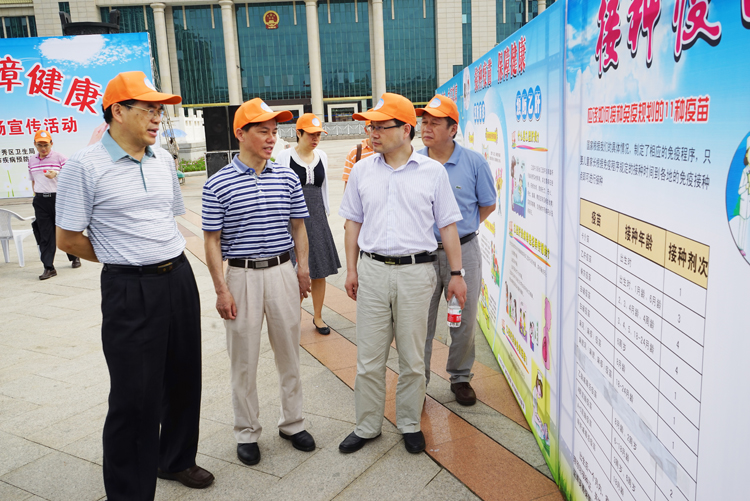 仪式结束后,施小明副主任与群众一同观看了现场的免疫规划知识宣传展板,并前往南宁市七星社区卫生服务中心预防接种门诊慰问预防接种工作者,并亲自给适龄儿童喂服了糖丸。